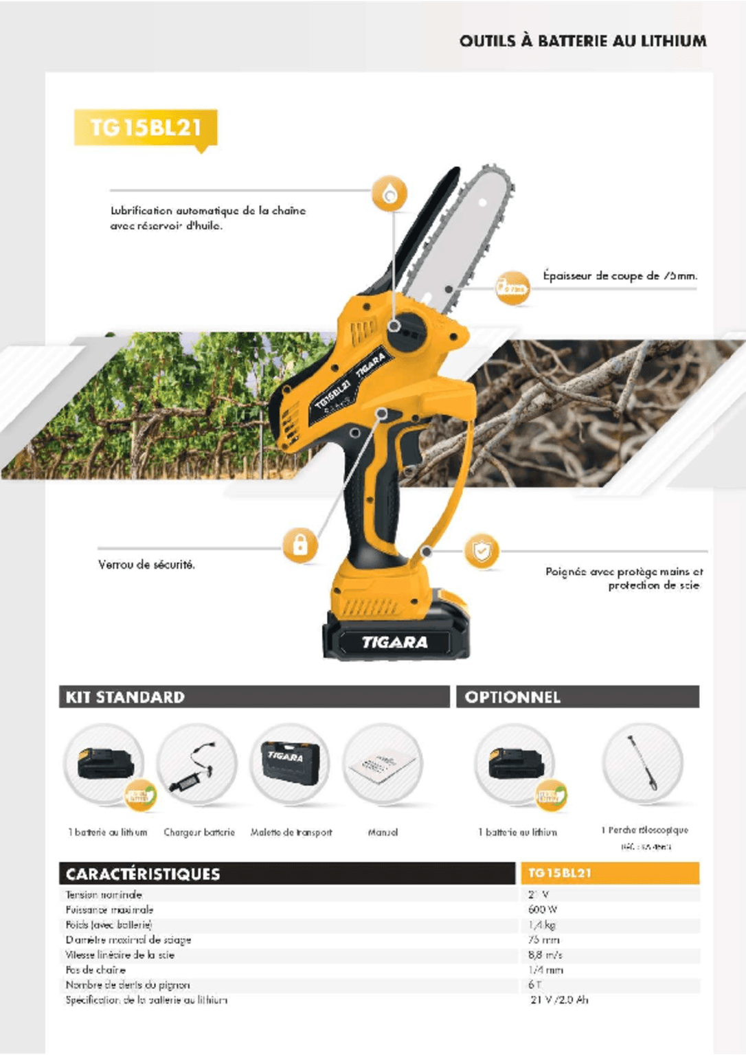 Scie de jardin à batterie TG15 BL21