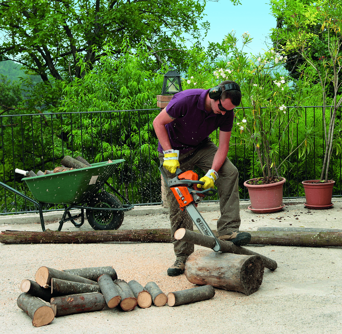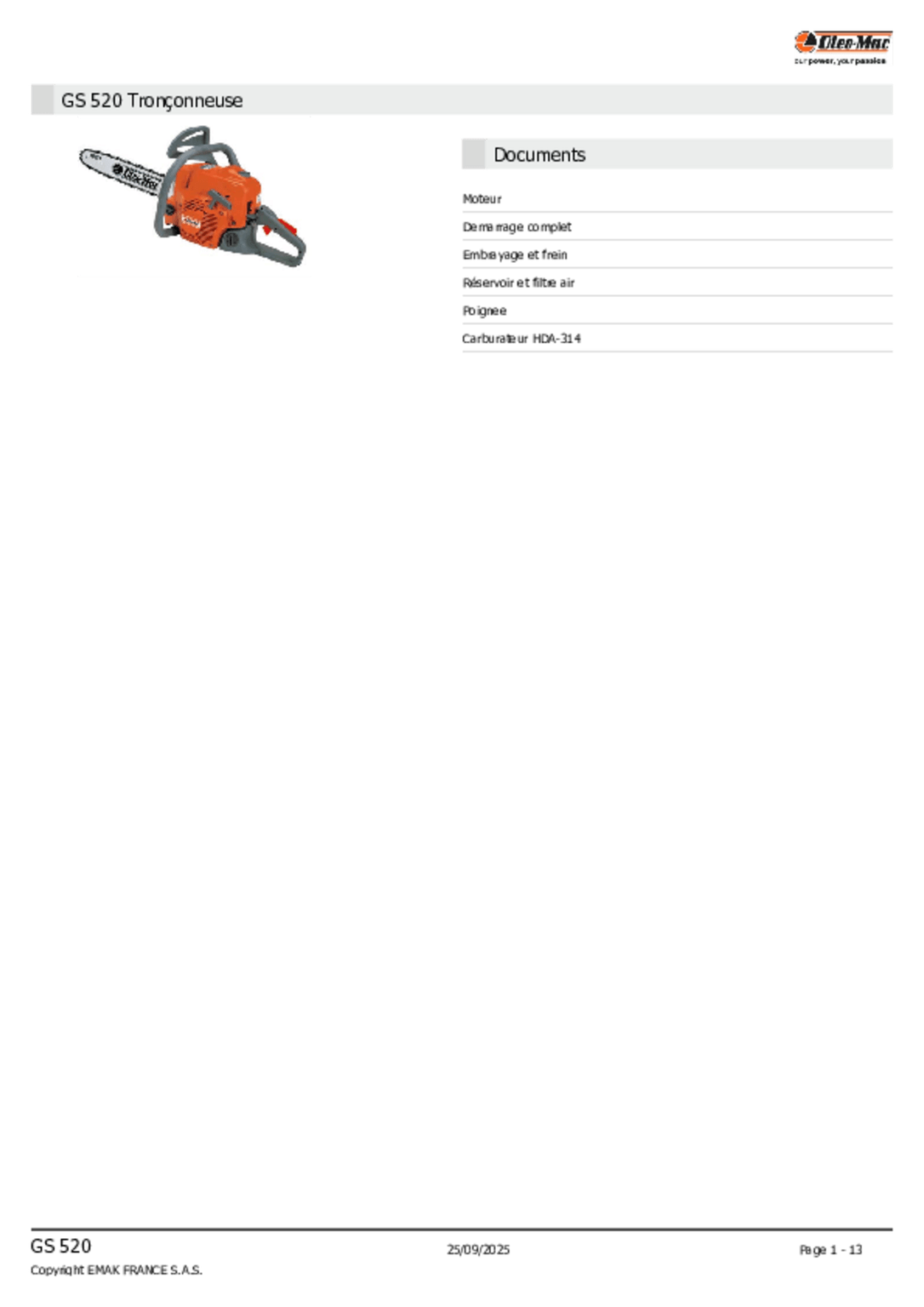 2T. 54,5 cc. 2,6 kW/3,5 ch. 51 cm. Chaine 0,325'' x 0.058''. Tendeur de chaine latéral.