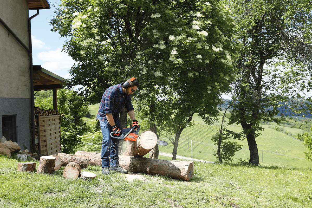2T. 54,5 cc. 2,6 kW/3,5 ch. 51 cm. Chaine 0,325'' x 0.058''. Tendeur de chaine latéral.