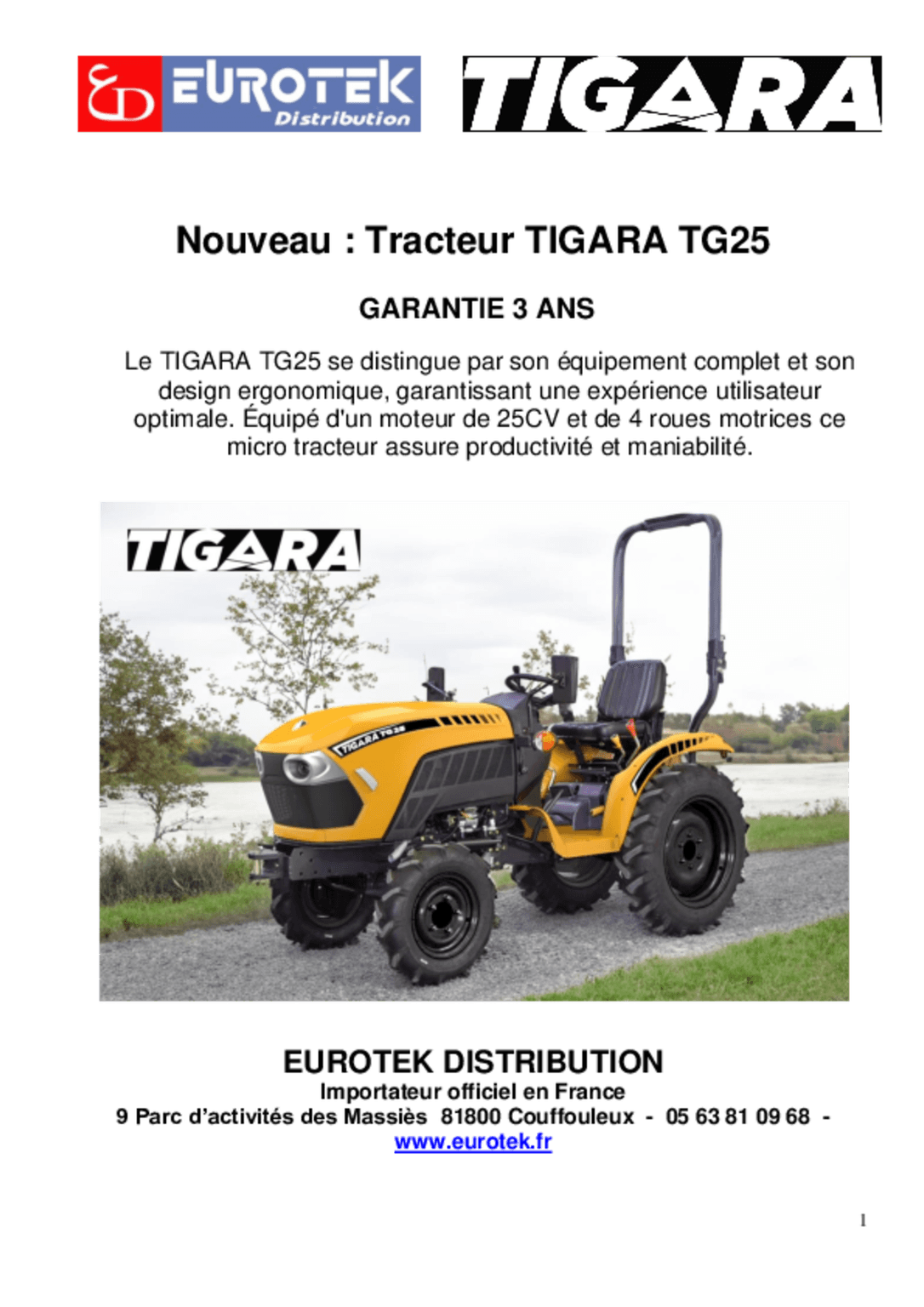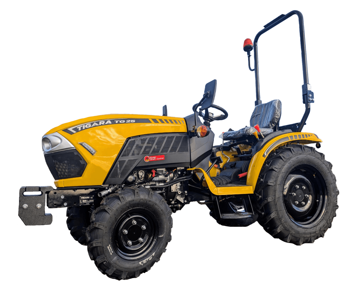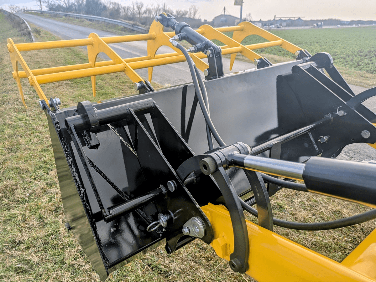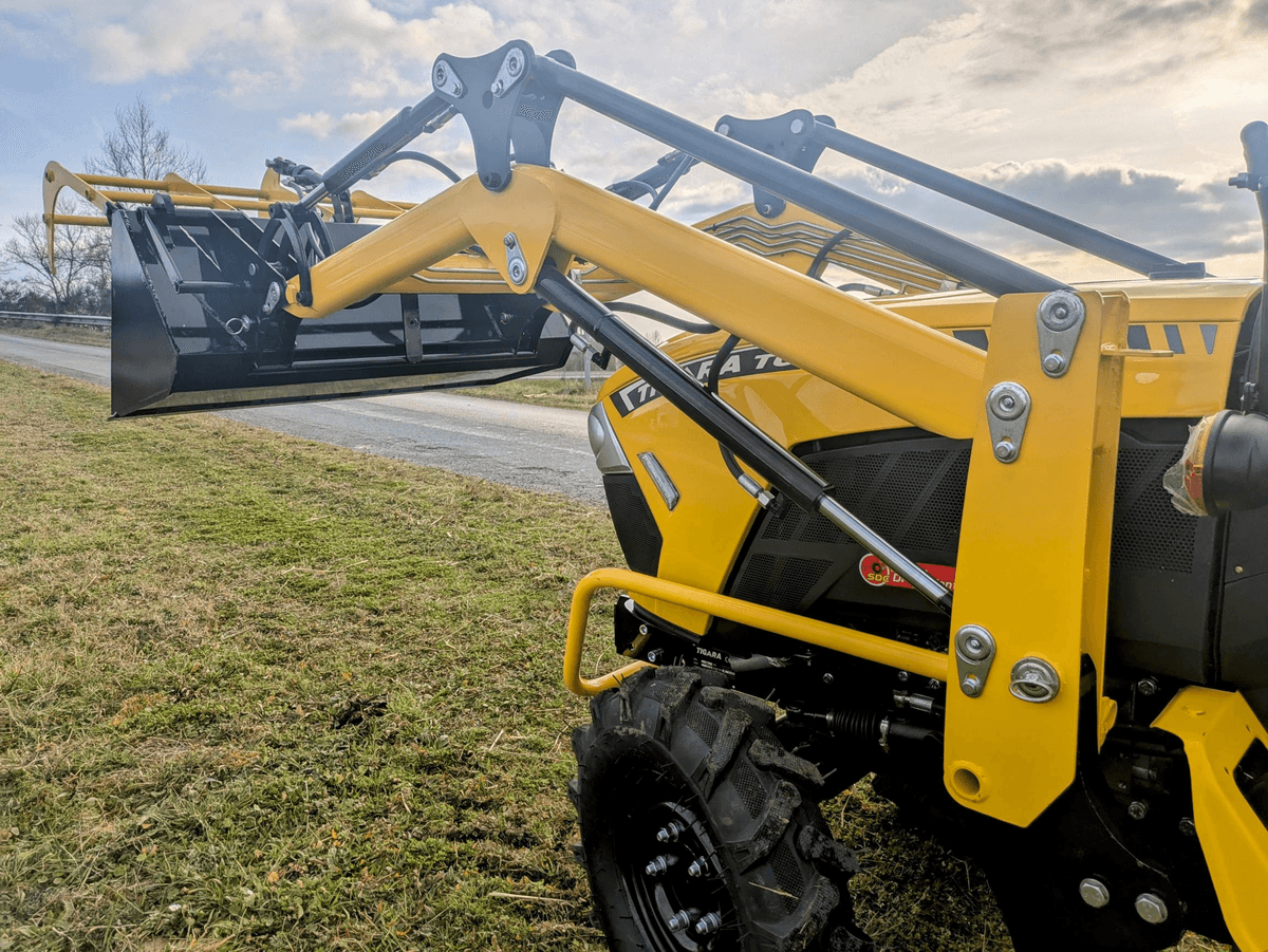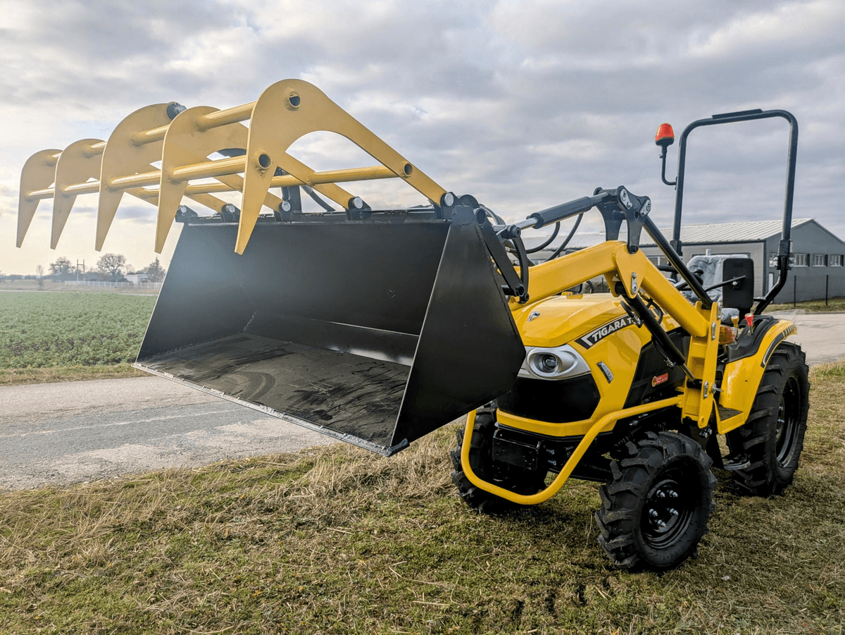 En option : Chargeur frontal, benne multi-service avec kit hydraulique complet, pique bottes, transpalette.
