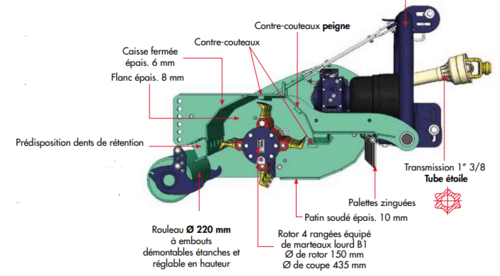 Rotor 4 rangées équipé de marteaux lourds B1.