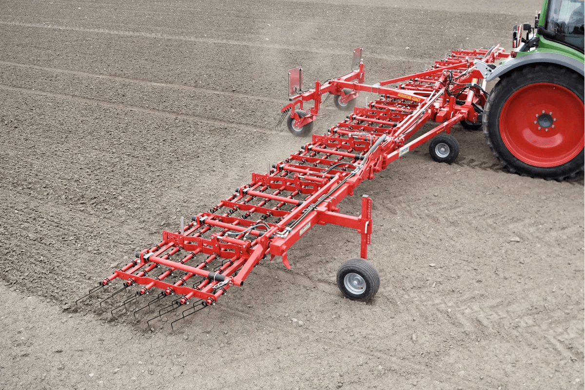 La gamme AEROSTAR EXACT est une herse étrille de précision équipée de dents longues de 600 mm de longueur et de 7 mm de diamètre qui permettent de s’adapter à la configuration du sol et d’étriller à un stade avancé de la culture.