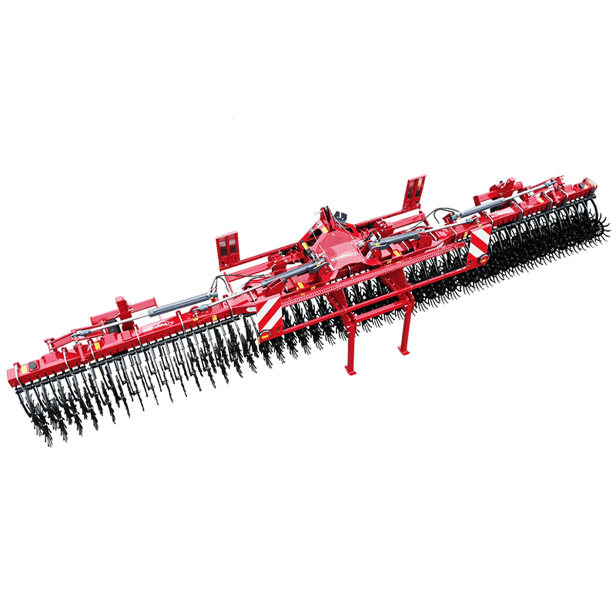 La houe rotative ROTAKING pour le désherbage mécanique, l’écroutage, l’aération du sol des cultures, fixe ou repliable avec une largeur de travail de 3 m à 12,4 m selon les modèles. Rotors Ø 540 mm décalés montés en quinconce sur 2 rangées décalées, espacement de 87 mm permet de mieux laisser passer les résidus végétaux et évite le blocage par les pierres. Réglage de la position des roues (1,5 m-2,3 m) pour s’adapter aux entre-rangs et pour la hauteur des roues grâce à une crémaillère et un indicateur. Attelage 3 points en chapes Cat.2 et 3. Nombreux équipements de série et en option pour chaque utilisation. Modèles : Houes fixes ROTAKING P – largeur de travail de 3 m à 3,5 m Modèles : Houes repliables ROTAKING PR – largeur de travail de 4,8 m à 12,4 m