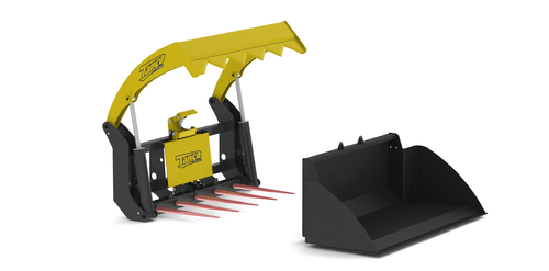 Cette pince coupe-balle vous fera gagner du temps et vous garantira un travail tout en sécurité. Plus besoin de monter et descendre de votre cabine, cet outil permet de ramasser votre balle enrubannées de 1,2m à 1,55m de diamètre, la couper en deux assurant une alimentation directe dans les couloirs, ou mangeoires ou dans les mélangeuses. Grâce à un mécanisme breveté, le film plastique et le filet sont maintenus à la pince balle, et peuvent être emportés directement dans un endroit choisi pour les déposer, tout cela sans descendre de votre engin. Elles sont toutes équipées de série d'un coupleur hydraulique simple standard.