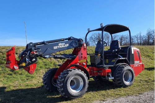 Valet de ferme conçu pour l’agriculture, paysage et BTP et pour des équipements lourds devant tels que godet, malaxeur à béton, pailleuse, dérouleuse, godet nettoyeur hacheur de betteraves.