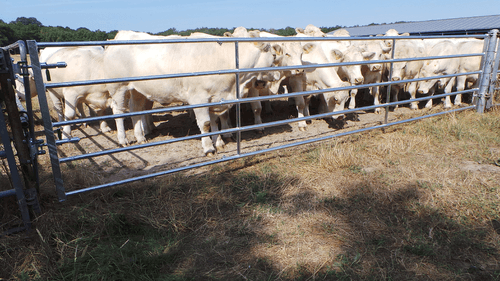 Une gamme de barrières d'herbage de 3 à 6 m construite en tube de 42 mm de diamètre avec partie extensible en tube de 34 mm de diamètre.