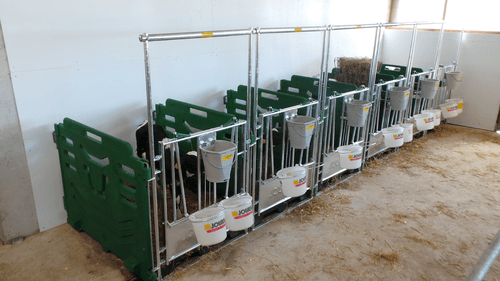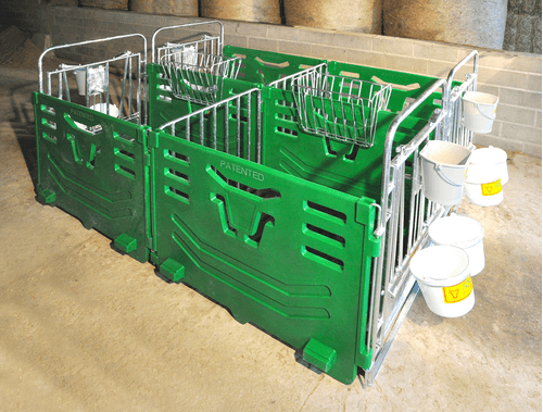 Une gamme complète de cases à veaux avec parois latérales en pehd ou en tôle. Façade ouvrante par verrou sécurisé avec 2 places de cornadis, 2 porte-seaux rabattables et un support pour seau à tétine.