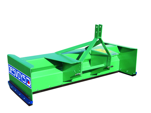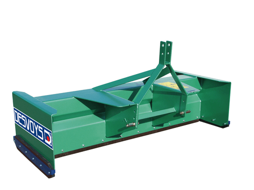 Série patins soudés : Attelage catégorie 1 sur pitons. Lame caoutchouc armé réversible 65 shores. Profondeur : 0,75 m. Hauteur : 0,52 m. Epaisseur : 6 mm. Poids : 185 kg. Largeur de travail : 2 m. Modèle : 0044 Série JUNIOR, gamme semi-lourde : Attelage catégorie 1 sur pitons. Lame caoutchouc armé réversible 65 shores. Profondeur : 1 m. Hauteur : 0,60 m. Epaisseur : 8 mm. Poids : 307 kg - 323 kg - 340 kg Largeur de travail : 2 m - 2,25 m - 2,50 m. Modèles : 0045 - 0145 - 0245 Série SENIOR, gamme lourde : Attelage catégorie 2 en chapes. Lame et patins en caoutchouc armé réversible 65 shores Profondeur : 1,25 m. Hauteur : 0,75 m. Epaisseur 8 mm. Poids : 432 kg - 452 kg - 488 kg. Largeur de travail : 2,25 m - 2,50 m - 3 m. Modèles : 0187 - 0190 - 0191 Série attelage flottant pour chargeurs et télescopiques JUNIOR et SENIOR : Attelage 3 points chargeur - télescopique. Lame et patins en caoutchouc armé 65 shores. Type JUNIOR : Profondeur : 1,00 m. Hauteur : 0,60 m. Epaisseur 8 mm. Poids : 375 kg - 400 kg Largeur de travail : 2,25 m - 2,50 m. Type SENIOR : Profondeur : 1,25 m. Hauteur : 0,75 m. Epaisseur 8 mm. Poids : 500 kg - 557 kg. Largeur de travail : 2,50 m - 3,00 m. Modèles JUNIOR : 0283 - 0284 - Modèles SENIOR : 0285 - 0286. Série racloir hydraulique : Adapté pour différents attelages. Attelage flottant catégorie 2 -3 points (en option Chargeur - Télescopique). Rouleau d'appui réglable. Profondeur : 1,75 m. Hauteur : 0,45 m. Epaisseur 10 mm. Poids : 530 kg Largeur de travail : de 2,10 m à 4,5 m. Modèle : 1169