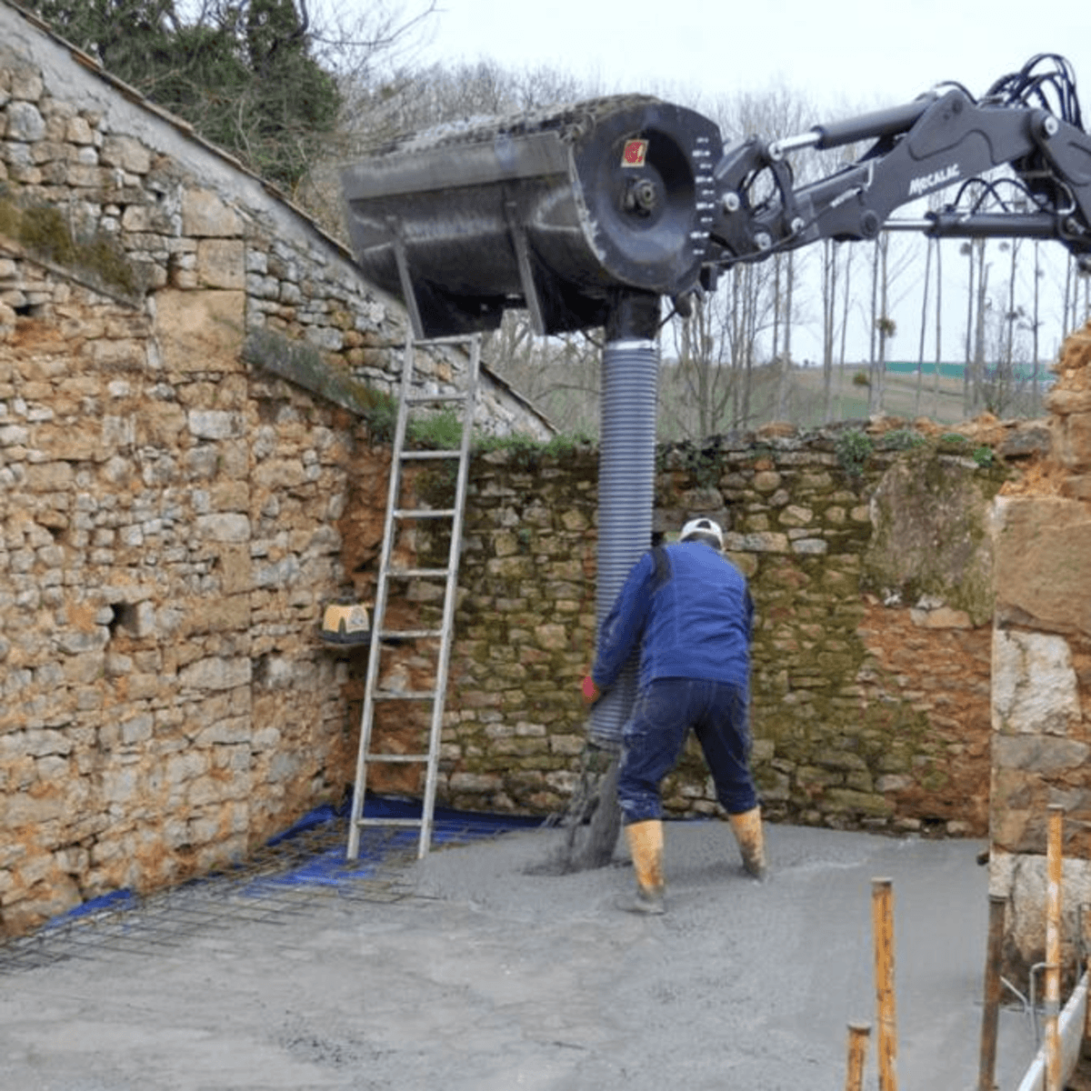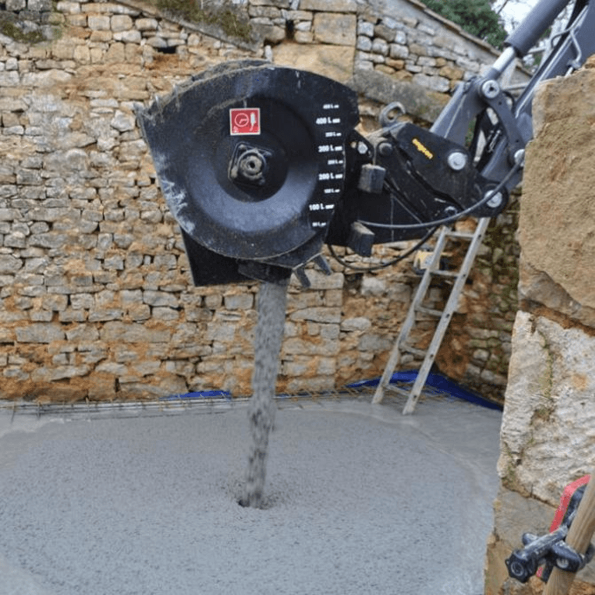 Le godet malaxeur à béton TUBOMIX s’adapte à différents porteurs tels que télescopique, chargeur, pelle, mini-pelle...afin de ne pas utiliser un camion toupie et d’apporter la quantité nécessaire au bon endroit. Équipé de véritables pales en acier anti-abrasion interchangeables rapidement permettant un mélange des matériaux de façon homogène et rapide. Disponible en différents volumes, de 100 à 1100 litres pour s’ajuster à l’engin porteur. Moteur hydraulique sans drainage diminuant les coûts de montage. Les godets TURBOMIX GB avec grille boulonnée et les godes TURBOMIX GH à ouverture de grille hydraulique.