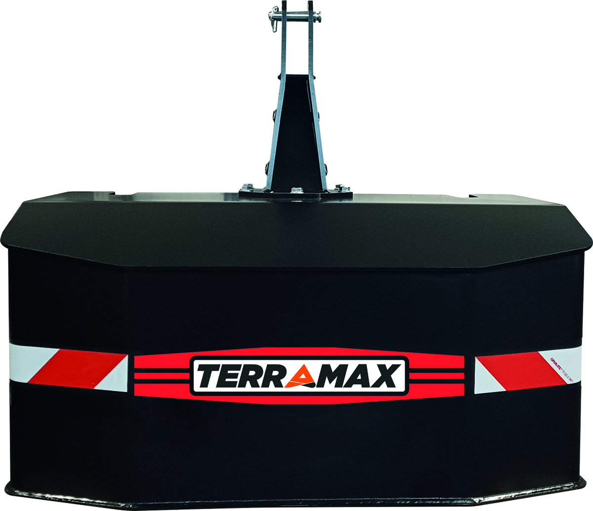 Masse ultra compacte, deux axes en chape sécurisée avec rotules d'attelage en CAT 3-2, fournies prêtes à être attelées avec axes et goupilles du 3 points.