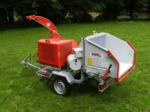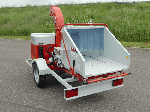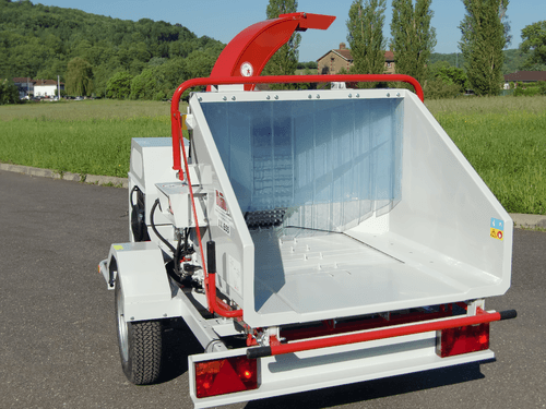 Moteur thermique essence ou diesel, prise de force, remorque routière. Accès très facile au rotor, au rouleau ameneur et à la contre lame par simple basculement de l’éjection. Choix d’options possible selon les besoins.