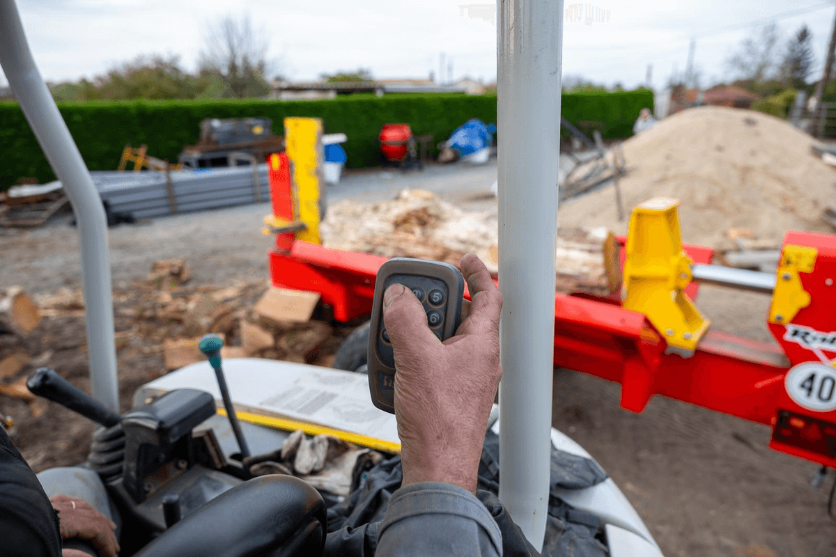 La fendeuse de bûches hydraulique horizontale F45 d’une puissance de 45 tonnes est principalement prévue aux forestiers, bûcherons…Cette fendeuse à bois professionnelle permets de sectionner les grosses grumes avant de les passer dans un combiné scieur / fendeur ou à la fendeuse. Elle permet de diviser les grosses grumes avant de les passer dans un combiné scieur / fendeur ou à la fendeuse et de fendre des billons allant jusqu’à 2,60 mètres de long de tous les diamètres. Le coin de fendage en étoile peut fendre le billon en 2 ou 4 morceaux en un seul passage. Fendage à distance par radiocommande depuis le poste de conduite. Entraînée par la prise de force tracteur, elle dispose d’une centrale hydraulique avec pompe double débit 100 l/min, réservoir 150 litres d’huile avec huile et cardan. Nombreuses configurations dont possibilité d’adapter en option essieu de déplacement 2 roues, entrainement électrique triphasé