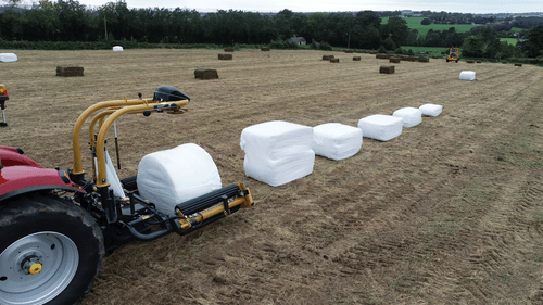 Enrubanneuse portée à 3 points pour balles rondes jusqu’à 1,7 m de diamètre et balles carrées jusqu’à 1,9 m de long. Equipée de 2 satellites et d’un coupe film télescopique Cut & Start. Chargement automatique rapide et en douceur grâce au système hydraulique à vitesse variable.