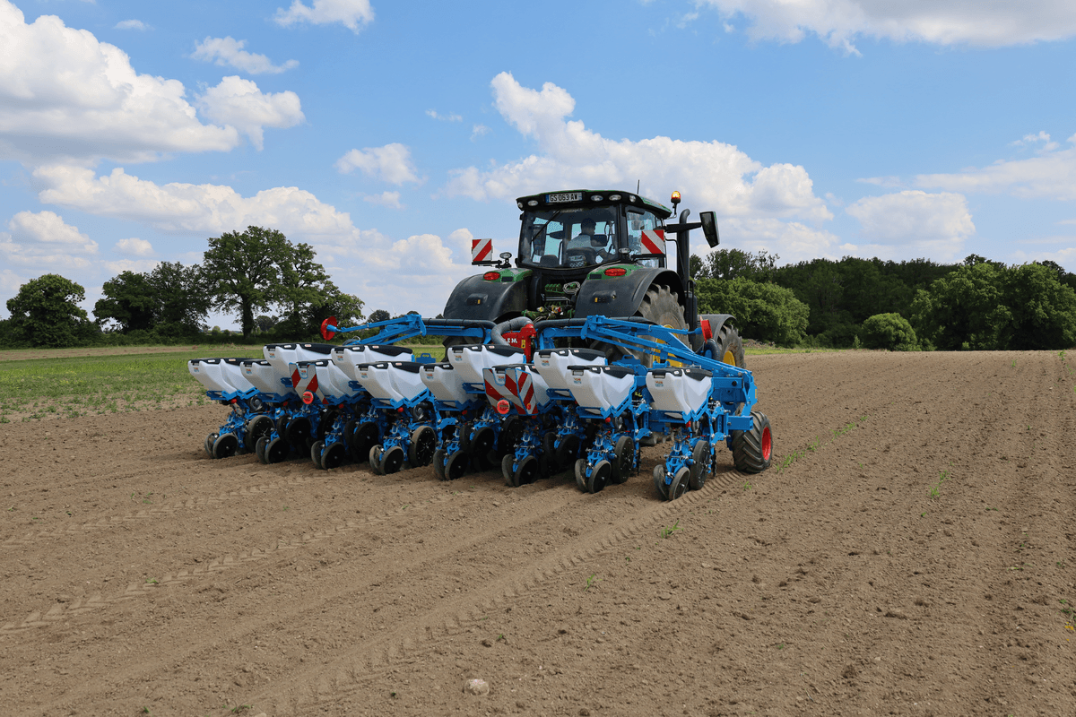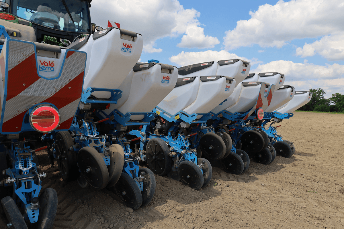 Sur système de platines EasySlide, permettant une translation rapide et sans effort des éléments semeurs à l'aide d'une simple clé. De 12 rangs à 45 ou 50cm d'inter rang à une configuration 8 rangs à 75 ou 80cm d'inter rang en seulement 25mn, changement de disque compris, relevage hydraulique des éléments semeurs non utilisés. Changements de configuration possibles même au champ. Châssis flottant, garantissant un suivi de terrain optimal. Eléments semeurs ValoTerra.