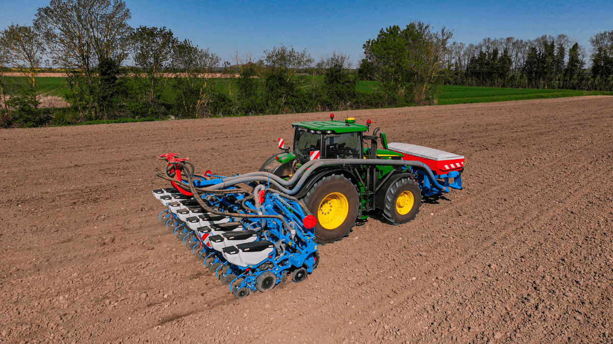 Nouveau châssis porté TFC2, disponible de 8 à 12 rangs avec inter rangs de 45 à 80 cm, gabarit routier 3 ou 3.5m. Châssis flottant en trois parties assurant un suivi de terrain remarquable. Système d’enfouissement d’engrais, alimenté soit par une trémie frontale, soit par une trémie embarquée de 1350L (pour les versions 8 rangs). Nouveaux enfouisseurs mono-disque à roue de jauge, garantissant une profondeur de dépôt constante, qu’importe la typologie du sol. Système innovant d’accompagnement des graines ASG. Convoyage des graines via une brosse, permettant un contrôle total de la trajectoire de la graine, depuis le disque de sélection jusqu’à sa dépose dans le sillon. Grâce à une vitesse de sortie proportionnelle à celle du tracteur, l’espacement entre les graines reste d’une précision ultime, vitesse d’avancement de 4 à 18 km/h.