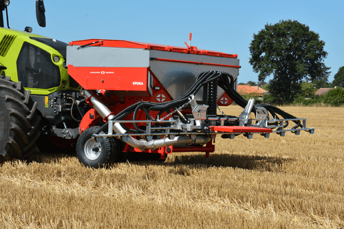 Trémie inox, cloisonnée et pressurisée 1 700 ou 2 300 L, grande ouverture pour faciliter le remplissage, doseur inox en simple ou double distribution, grande plage de débit grâce aux différentes bobines, entraînement hydraulique de la turbine, marche pied, disponible en version Isobus pour compatibilité coupure de tronçons et modulation de dose. Nombreuses options possibles (tasse-avant auto-directionnel, rampe frontale, tête de répartition, kit de distribution…).