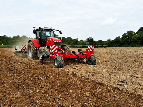 Gamme de déchaumeurs poussés OPTILINE avec châssis tripoutre carré de 100 x 100 et 3 rangées de dents soit sécurité non-stop ressort ou sécurité boulon de cisaillement ou de type queue de cochon carré 35 mm.
