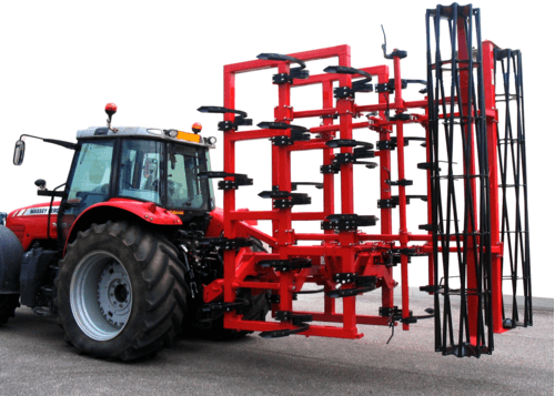 Equipements arrière, rouleau barre carrées diamètre 500mm, herse peigne triple, paliers sans entretien et réglage mécanique de la hauteur du rouleau. Kit signalisation avant et arrière LED.