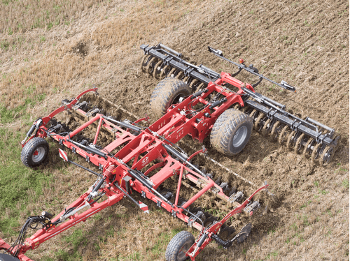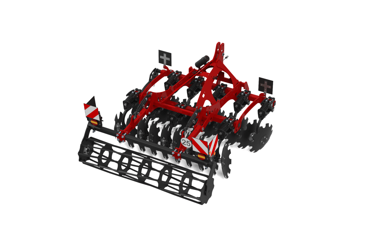 Idéal pour les tracteurs de faible puissance de 85 à 125cv, dégagement sous bâti de 725mm, distance entre les deux rangées de disques de 950mm, déflecteur latéral gauche pour capter le flux de terre dans le gabarit de la machine., monté sur pivot pour s’escamoter en cas de rencontre avec un corps étranger, déflecteur latéral droit en option.
