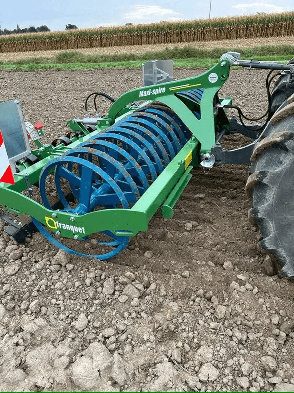 Le MAXI-SPIRE est un rouleau plombeur avant pour reprise de labour, rappuie le sol pour un lit de semence homogène et nivelle le sol devant le passage du tracteur. Disponibles de 3 à 6 m, fixes ou repliables, réversibles, auto directionnels.