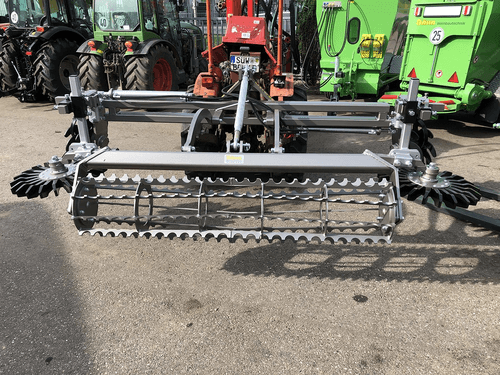 Cadre à largeur variable hydraulique, montage frontal ou arrière, jusqu'à 4,50 m, double ou triple disque émoteur. Bineuse à doigts. Rouleau à barres