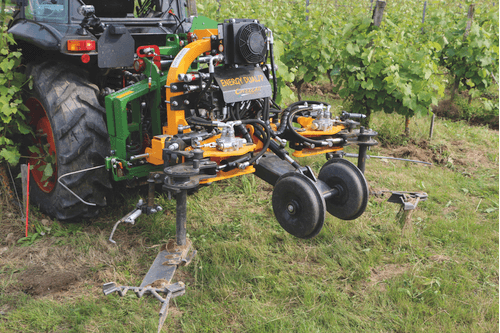 Large choix de châssis interceps fixés à l’arrière, à l’avant ou entre les roues du tracteur selon le modèle pour diverses utilisations dans le travail viticole/arboricole.