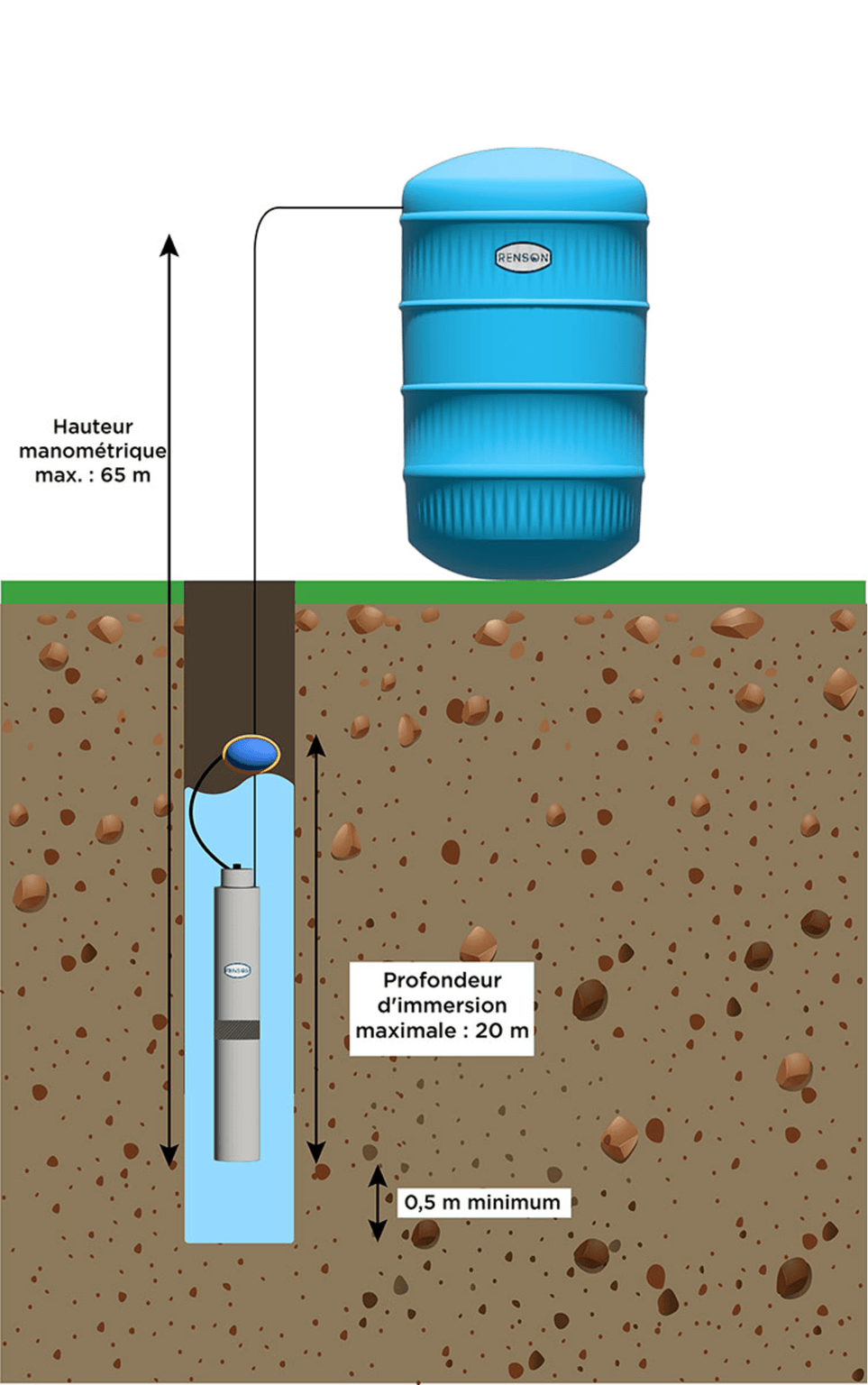Hauteur Manométrique totale : 65 m.