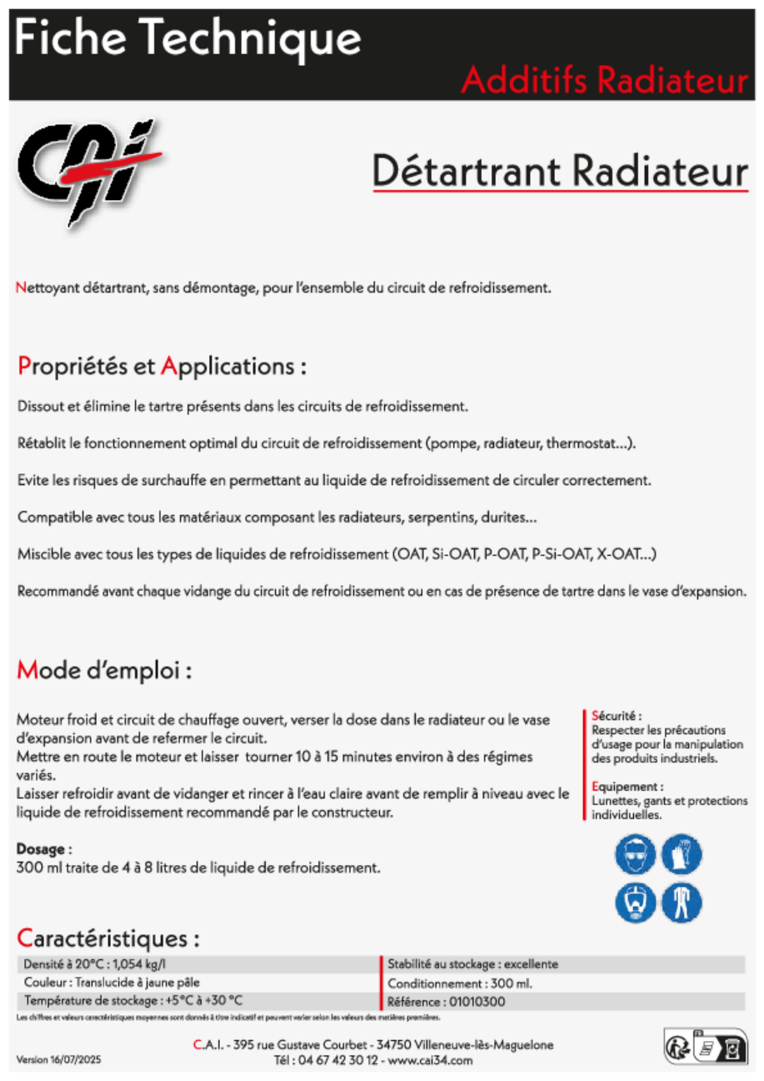 Décolle, dissout et nettoie les dépôts de tartre, rouille présents dans le système de refroidissement des véhicules à moteurs thermiques.