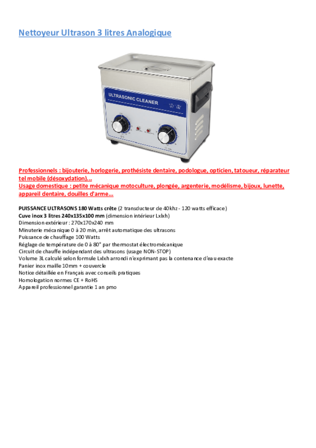 Nettoyeur à ultrasons 3 L