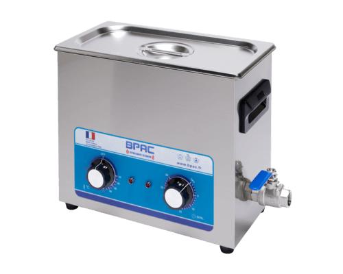 Cuve en inox 6 L. 270 W en crête. Minuterie mécanique de 0 à 20 min. Arrêt automatique des ultrasons. Puissance de chauffage 300 W. Réglage de température de 0 à 80° par thermostat électromécanique. Circuit de chauffe indépendant des ultrasons (usage non-stop). Vanne de vidange. Livré avec un couvercle. Homologation normes CE + RoHS. Garantie 1 an.