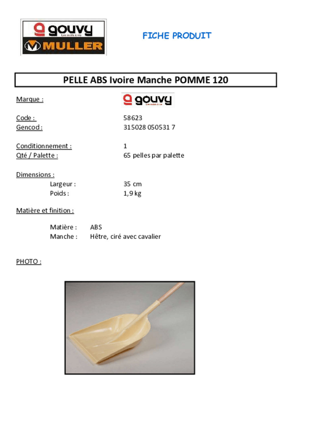 Epaisseur : 2,5 mm. Manche droit. Longueur : 1,62 m, largeur 31 cm.