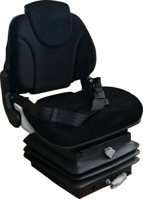 Réglages : poids : 50 - 120 kg, Réglage du dossier : -73°-+17,5°, course 150 mm. Appui-tête, ceinture de sécurité avec enrouleur automatique. Dimensions : H 788 x l 528 x P 587 mm . Tissu noir.